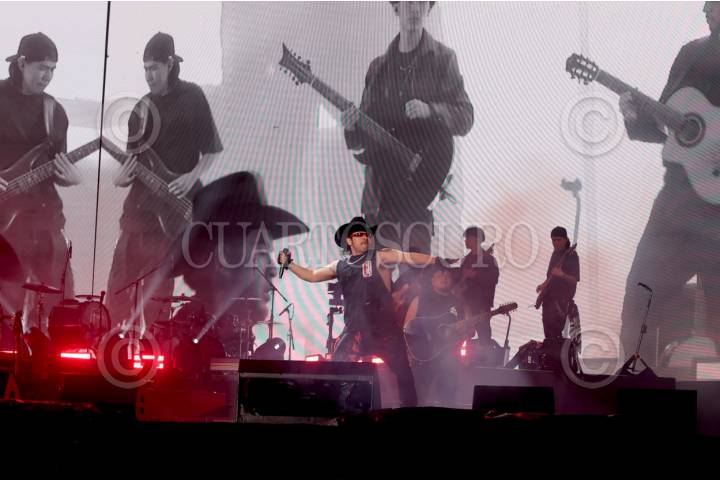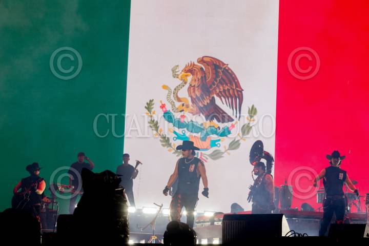CIUDAD DE MÉXICO, 26JULIO2025. El grupo mexicoestadounidense de corridos tumbados y música sirreña Fuerza Regida durante su presentación en el Estadio GNP con su espectáculo “Esto no es un Tour México”. FOTO: EDGAR NEGRETE LIRA/CUARTOSCURO.COM