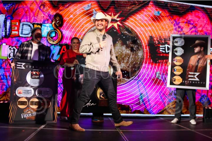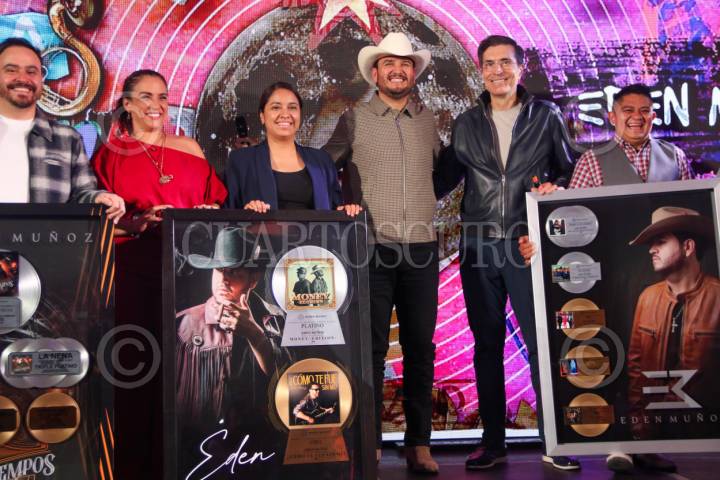 CIUDAD DE MÉXICO, 27 AGOSTO 2025.- Edén Muñoz, cantante de regional mexicano, en conferencia de prensa donde presentó su álbum "Piedras a la Luna", y recibió reconocimientos por sus producciones. FOTO: VICTORIA VALTIERRA / CUARTOSCURO.COM