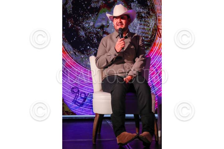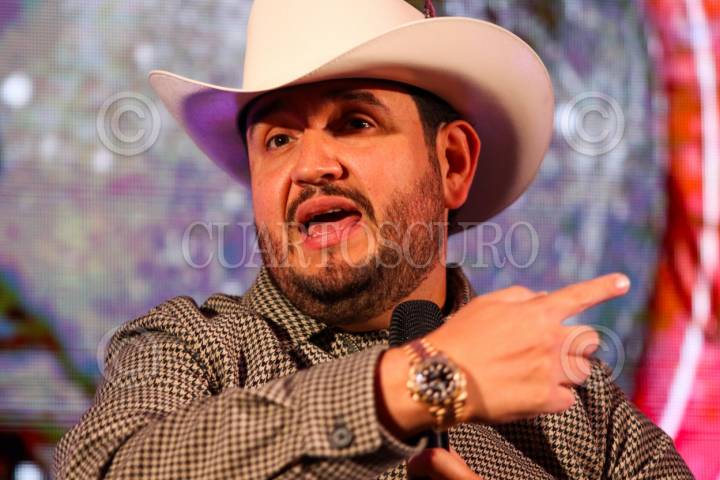 CIUDAD DE MÉXICO, 08ABRIL2025. Eduin Caz durante la conferencia de prensa con el grupo de regional mexicano Grupo Firme, anunciando sus dos fechas en el Estadio GNP para el proximo junio, donde presentarán su espectáculo "La Última peda Tour" asíi como el lanzamiento de su nuevo material discográfico titulado "Evolución ". FOTO: EDGAR NEGRETE LIRA/CUARTOSCURO.COM