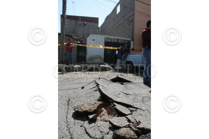CD NEZAHUALCOYOTL, ESTADO DE MÉXICO, 28OCTUBRE2010.- Elementos de Protección Civil, Policía Municipal y Estatal laboran en las calles afectadas por la explosión registrada esta madrugada por acumulación de gas en el subsuelo por los rellenos sanitarios de las calles, 2 Arbolitos, Verdolaga y Quelite de la colonia Benito Juárez municipio de Nezahualcoyotl. FOTO: LUIS CARBAYO/CUARTOSCURO.COM