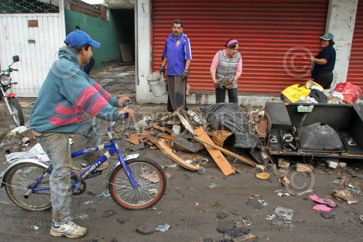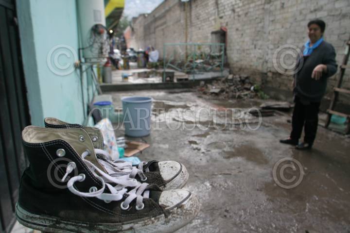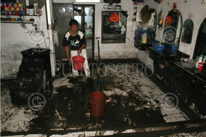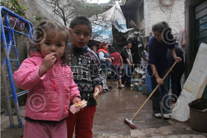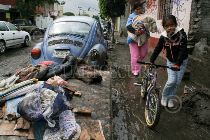 SAN ANDRES LA CAÑADA, ECATEPEC, ESTADO DE MÉXICO, 04NOVIEMBRE2009.- Familias continúan con la limpieza de sus casas del lodo y escombros que se generaron durante las lluvias del pasado viernes las cuales provocaron inundaciones en la zona. FOTO: ENRIQUE ORDÓÑEZ/CUARTOSCURO.COM