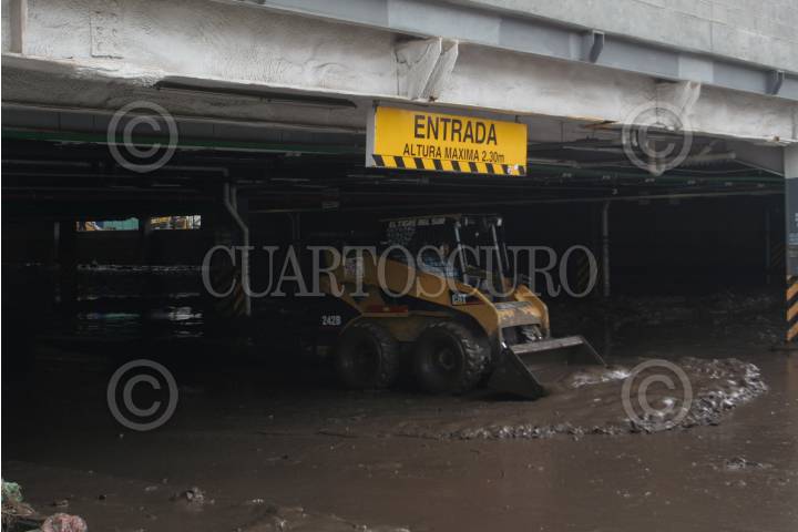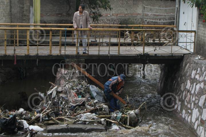 SAN ANDRES LA CAÑADA, ECATEPEC, ESTADO DE MÉXICO, 04NOVIEMBRE2009.- Trabajadores de protección civil realizan labores de remoción de escombros de lodo y basura tras las lluvias registradas el pasado viernes las cuales provocaron inundaciones en la zona. FOTO: ENRIQUE ORDÓÑEZ/CUARTOSCURO.COM