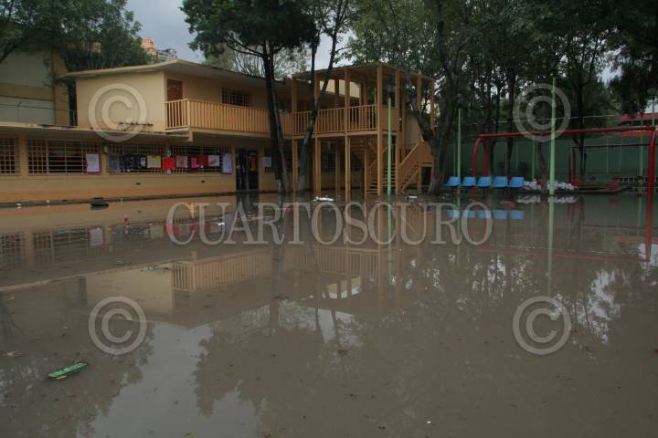 MÉXICO, D.F., 31OCTUBRE2009.- Una escuela ubicada en Cuautepec Barrio Bajo de la delegación Gustavo A. Madero, se vio afectadas al inundarse tras las fuertes lluvias registradas el día de ayer. FOTO: ENRIQUE ORDÓÑEZ/CUARTOSCURO.COM