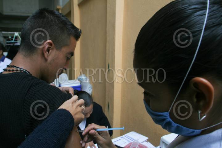 SAN ANDRES LA CAÑADA, ECATEPEC, ESTADO DE MÉXICO, 04NOVIEMBRE2009.- En algunas casas se colocaron consultorios de vacunacion y chequeo medico para atender a la gente que se vio afectada por las lluvias registradas el pasado viernes las cuales provocaron inundaciones en la zona. FOTO: ENRIQUE ORDÓÑEZ/CUARTOSCURO.COM