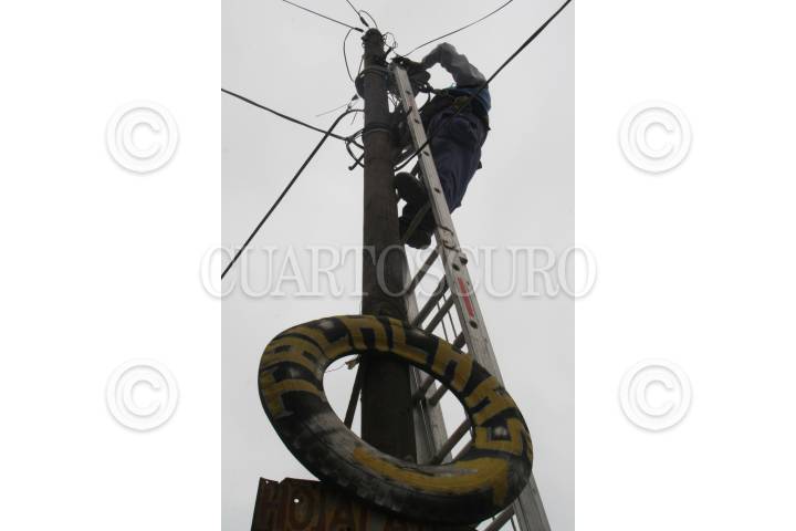 SAN ANDRES LA CAÑADA, ECATEPEC, ESTADO DE MÉXICO, 04NOVIEMBRE2009.- Trabajadores de teléfonos reparan postes para reanudar las lineas telefónicas después de haberse averiado tras las lluvias registradas el pasado viernes las cuales provocaron inundaciones en la zona. FOTO: ENRIQUE ORDÓÑEZ/CUARTOSCURO.COM