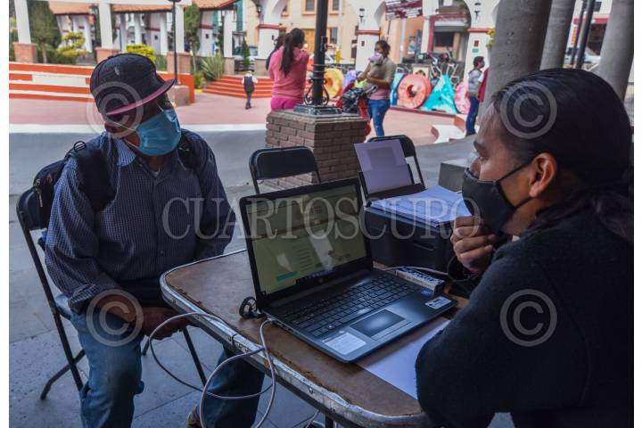 Instalan módulo de registro para vacuna contra COVID-19 en el ayuntamiento de Ocoyoacac para ayudar a las personas de la tercera edad que no tienen acceso a la tecnología.