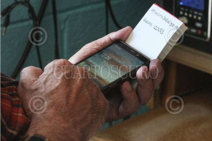 Con ayuda de familiares más jóvenes, adultos mayores intentan registro para la vacuna contra COVID-19.