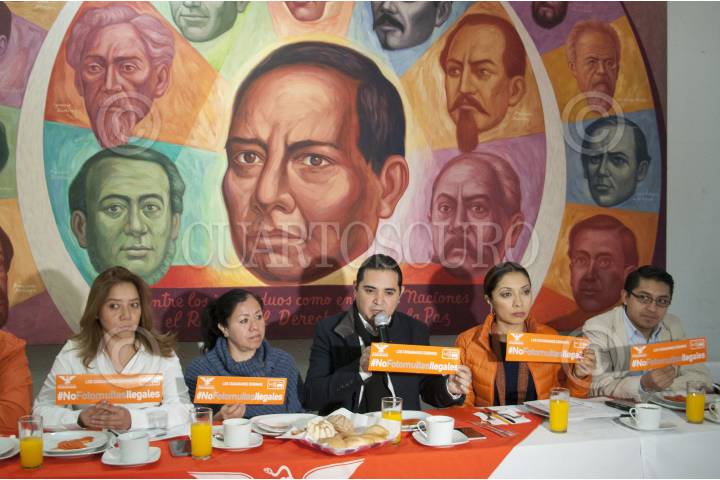 MÉXICO, D.F., 10ENERO2016.- Esthela Damián Peralta, presidenta de Movimiento Ciudadano en el Distrito Federal, en compañía de algunos miembros del partido, ofreció una conferencia de prensa para hablar sobre la puesta en marcha del operativo que ofrecerán gratuitamente a partir de mañana #NoFotomultasIlegales, para que cualquier persona que sea víctima de una multa que no le corresponda pueda recibir asesoría legal y logre promover un juicio de nulidad en un Tribunal de lo Contencioso Administrativo. FOTO: DIEGO SIMÓN SÁNCHEZ /CUARTOSCURO.COM