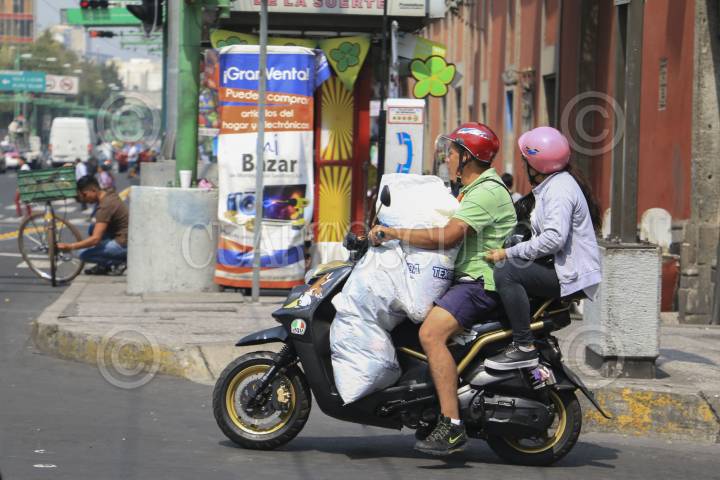 CIUDAD DE MÉXICO, 17OCTUBRE2016.- Un conductor sobrepasa el peso máximo de carga para motocicletas establecido en el reglamento de tránsito. FOTO: SAUL LÓPEZ /CUARTOSCURO.COM