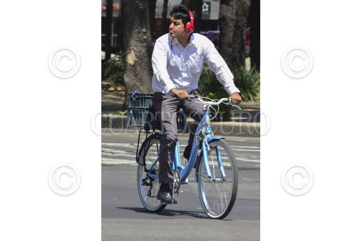 MÉXICO, D.F., 19AGOSTO2015.- Algunos ciclistas aun conducen mientras utilizan audífonos, a pesar de que fue estipulado en el nuevo Reglamento de Tránsito, a pesar de que policías de tránsito resguardan la zona vial. FOTO: MARÍA JOSÉ MARTÍNEZ /CUARTOSCURO.COM