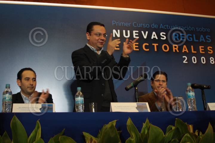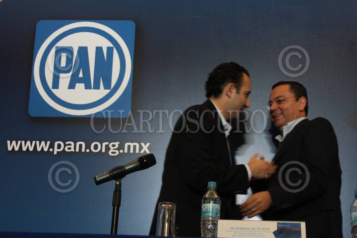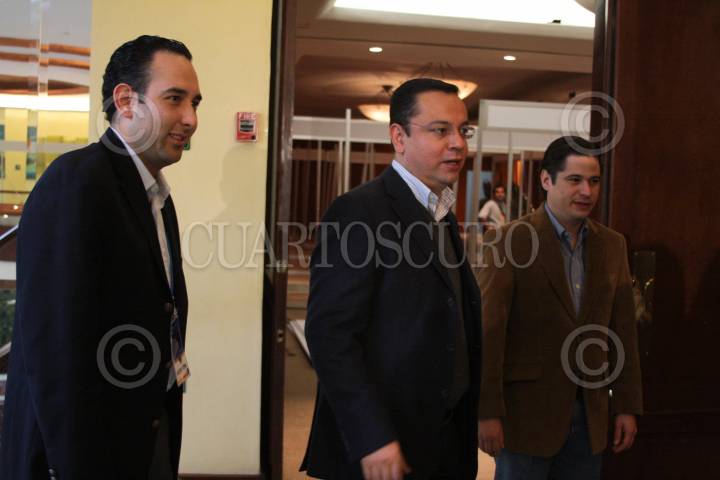 MÉXICO, D.F., 23NOVIEMBRE2008.- El presidente Nacional del PAN Germán Martínez Cazarez, en compañía de Roberto Gil Zurath Consejero del PAN en el IFE y Rogelio Carbajal Tejeda Secretario del C.E.N. del PAN; clausuraron las jornadas del Primer curso de actualización sobre nuevas reglas Electorales, desarrollado en un reconocido hotel al sur de la ciudad. FOTO: COSME RADA/CUARTOSCURO.COM