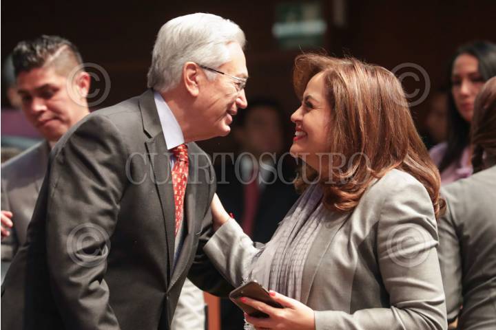 CIUDAD DE MÉXICO, 16NOVIEMBRE2017.- El coordinador del Partido del Trabajo, Manuel Bartlett, saluda Ana Lilia Herrera, presidenta la Junta de Coordinación Política, durante la sesión en al que se aprobó las reglas para designar al nuevo titular de la Fepade. FOTO: SENADO /CUARTOSCURO.COM