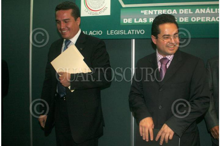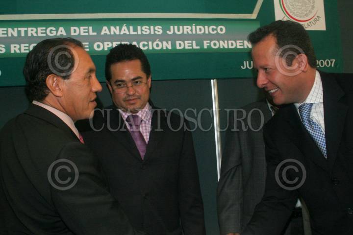 MÉXICO, D.F. 26JULIO2007.- Los delegados Alejandro Carbajal, Azcapotzalco y Leonel Luna Estrada, Álvaro Obragón, durante la Entrega del análisis jurídico de las reglas de operación del FONDEN, que se llevó a cabo en la Cámara de Diputados. FOTO: PAOLA HIDALGO/CUARTOSCURO.COM