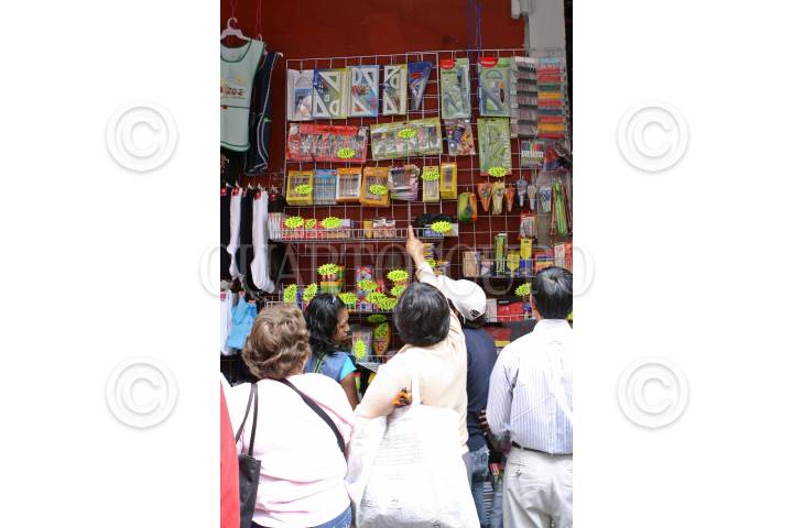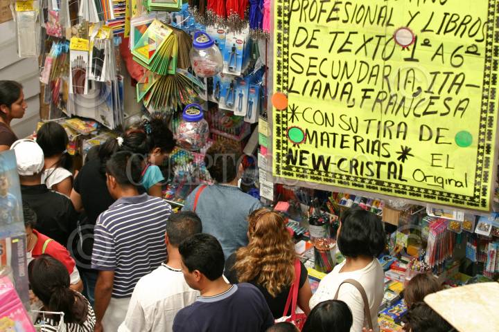MÉXICO, D.F., 21AGOSTO2009.- Cientos de personas acuden estos últimos días de vacaciones a las plazas comerciales del centro de la ciudad para surtir las listas de útiles escolares ya que este próximo lunes regresan a clases unos 25 millones de alumnos de preescolar, primaria y secundaria en todo el país. FOTO: RODOLFO ANGULO/CUARTOSCURO.COM