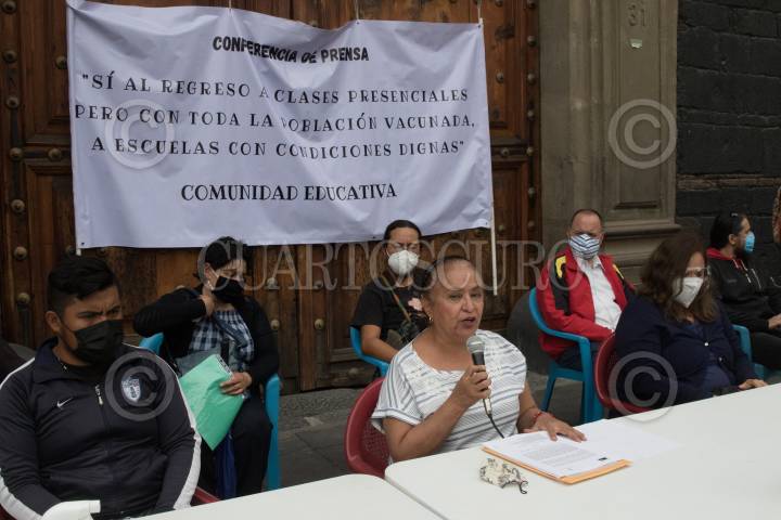 Docentes, estudiantes, madres y padres de familia de diferentes niveles educativos e instituciones se pronunciaron por un regreso a clases presenciales en condiciones seguras, en las puertas de la SEP.