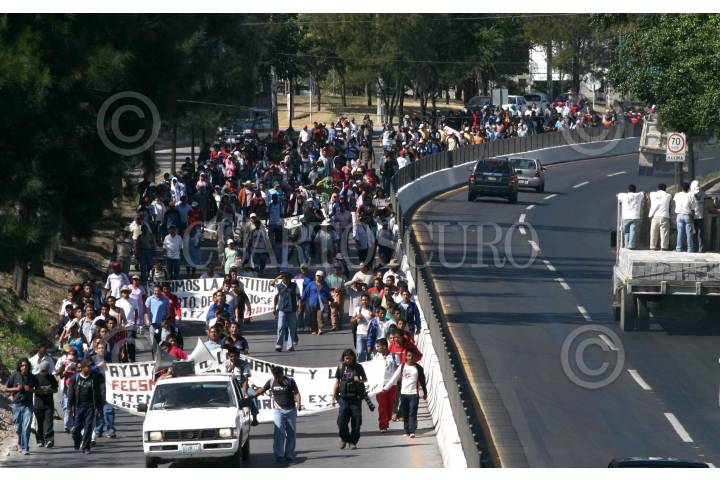 CHILPANCINGO. GUERRERO, 03DICIEMBRE2007.- Estudiantes de la normal rural de Ayotzinapa acompañados de padres de familia, marcharon sobre la autopista del sol hacia las instalaciones del palacio de gobierno de Guerrero, exigiendo al gobernador Zeferino Torreblanca la resolucion ante el caso de los estudiantes detenidos en Acapulco y la destitucion del secretario de Educación. FOTO: SAÚL LÓPEZ/CUARTOSCURO.COM