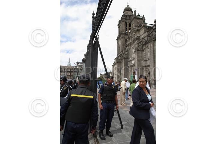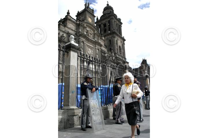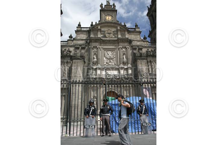 MÉXICO D.F. 15OCTUBRE2006.- Elementos de la secretaria de seguridad del D. F. reguardan la Catedral Metropolitana en un operativo especial. FOTO: GUILLERMO PEREA/CUARTOSCURO.COM