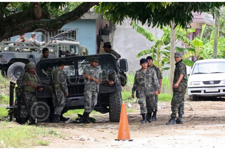 VILLAHERMOSA, TABASCO, 07JUNIO2008.- Elementos del ejercito Méxicano destacamentados en la 30 zona militar resguardan una propiedad ubicada sobre la calle Mártires de Cananea en la colonia Indeco ya que encontraron armas largas, drogas: marihuana y cocaína. FOTO: MARCO POLO GUZMÁN HERNÁNDEZ/CUARTOSCURO.COM