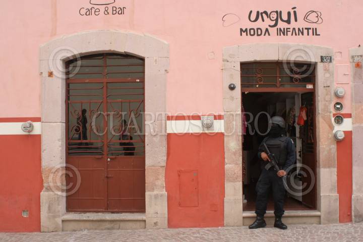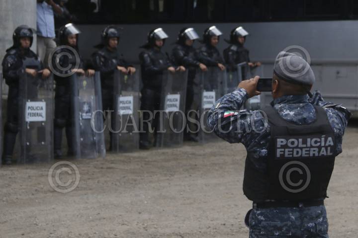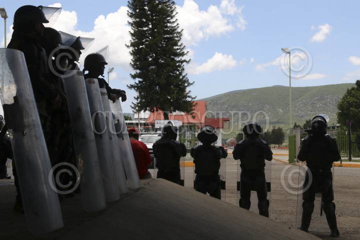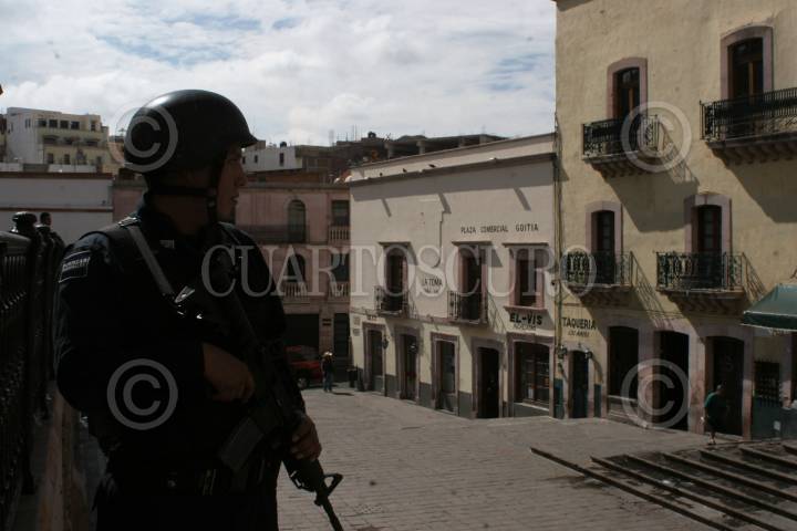ZACATECAS, ZACATECAS, 28AGOSTO2009.- Efectivos de la Policía Federal resguardaron los alrededores de donde estuvieron presentes el director del IPN, la gobernadora del Estado y el titular de la SEP. FOTO: IVAN STEPHENS/CUARTOSCURO.COM