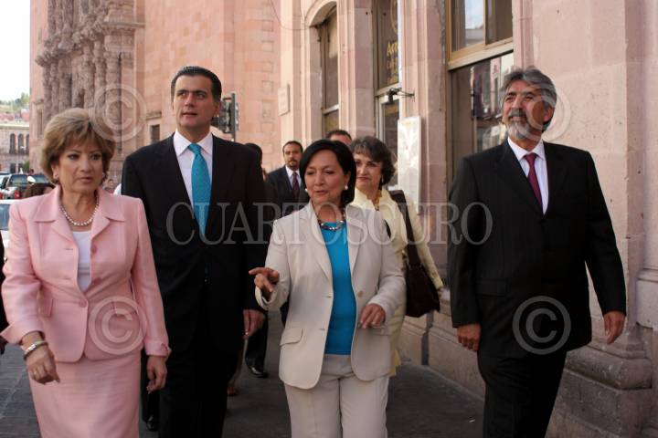 ZACATECAS, ZACATECAS, 28AGOSTO2009.- Alonso Lujambio, Secretario de Educación; Amalia García, gobernadora del Estado y Enrique Villa Rivera, rector del Instituto Politécnico Nacional caminan por las calles del centro. FOTO: IVAN STEPHENS/CUARTOSCURO.COM