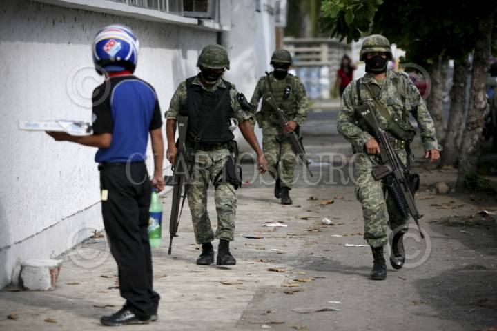 BOCA DEL RÍO, VERACRUZ, 11OCTUBRE2011.- Elementos del Ejercito Mexicano arribaron al Instituto de Medicina Forense para resguardarlo, ya que en el inmueble se albergan los cuerpos de diversas personas que fueron halladas este día en un paraje de la colonia Sentimientos de la Nación. FOTO: FÉLIX MÁRQUEZ/CUARTOSCURO.COM