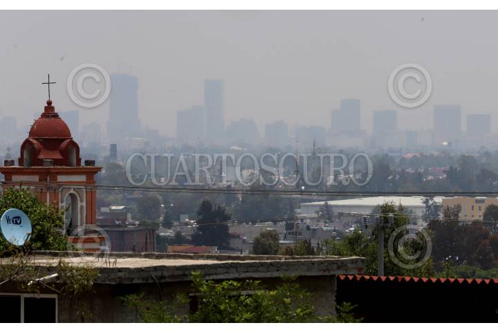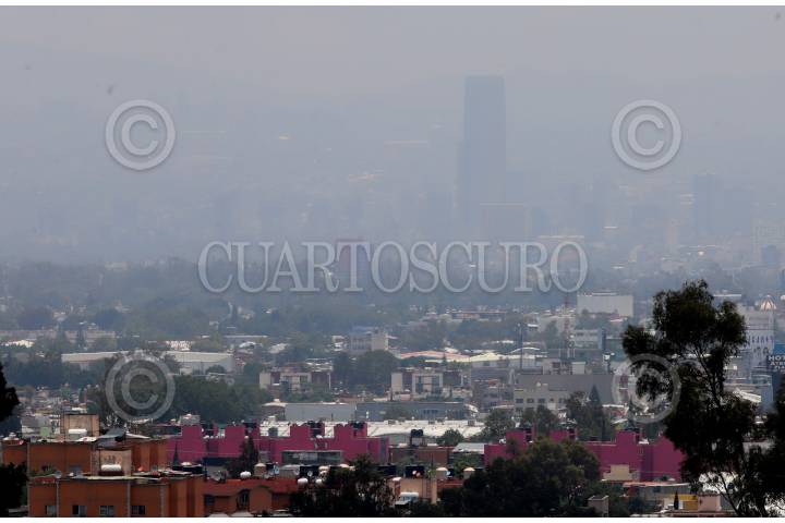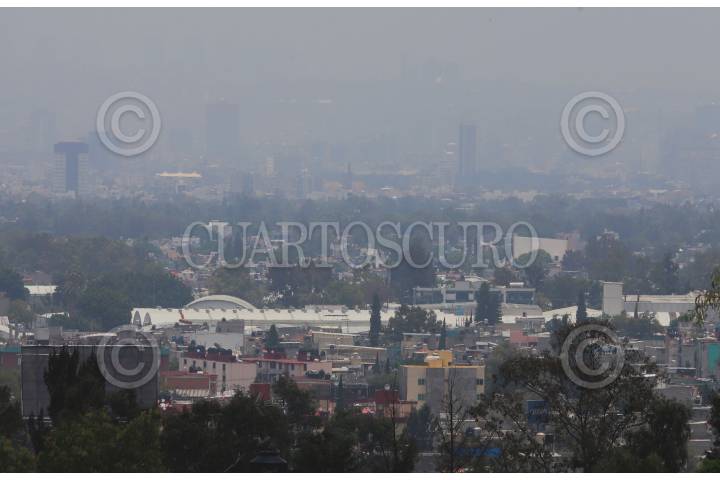 A pesar de que se reporta calidad de aire regular en el Valle de México, se aprecia una densa capa de contaminación desde el cerro de la Estrella en la alcaldía Iztapalapa.