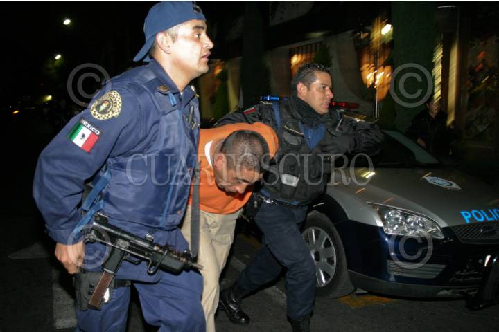 MÉXICO, D.F., 30OCTUBRE2008.- Esta madrugada un comando armado asalto la tienda Sanborn's de la avenida de los Insurgentes en la Colonia Santa Maria la Rivera, tomando de rehes por mas de una hora a 20 personas que se encontraban en el lugar tanto trabajadores como clientes. la policia intervino y logro la detencion de siete ladrones. FOTO: LUZ ACEVEDO/CUARTOSCURO.COM