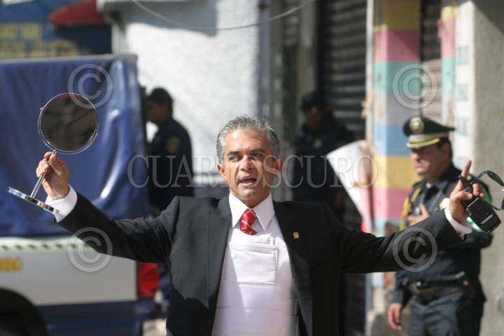 MÉXICO, D.F., 28ABRIL2010.- Miguel Angel Mancera, Procurador de General de Justicia del Distrito Federal, acudio al lugar donde un par de secuestradores se fugaron en una patrulla de la Secretaría de Seguridad Pública Un secuestrador amaga a un rehén luego de un intento de asalto a un establecimiento de Montepío Luz Saviñon en la colonia Acueducto de Guadalupe, al parecer tres individuos asaltaron el lugar pero algo salió mal al interior y tomaron a varias personas secuestradas las cuales han sido liberadas poco a poco pero amagan con matar a los empleados del lugar. FOTO: SAÚL LÓPEZ/CUARTOSCURO.COM