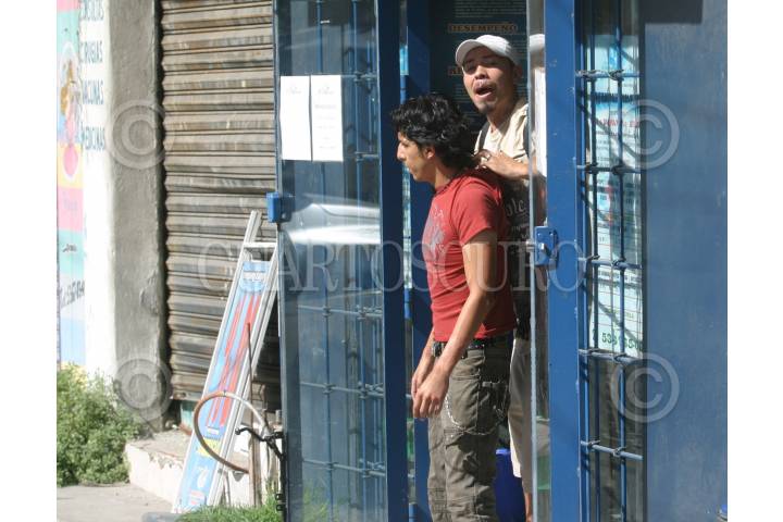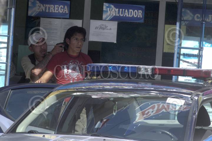 MÉXICO, D.F., 28ABRIL2010.- Un secuestrador amaga a un rehén luego de un intento de asalto a un establecimiento de Montepío Luz Saviñon en la colonia Acueducto de Guadalupe, al parecer tres individuos asaltaron el lugar pero algo salió mal al interior y tomaron a varias personas secuestradas las cuales han sido liberadas poco a poco pero amagan con matar a los empleados del lugar. FOTO: SAÚL LÓPEZ/CUARTOSCURO.COM