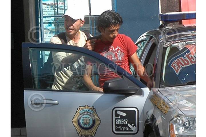 MÉXICO, D.F., 28ABRIL2010.- Dos secuestradores tomaron rehenes cuando la policía frustró su intentó de asaltar una casa de campaña Monte Pio ubicada de la avenida Acueducto de Guadalupe, los ladrones liberaron a varias personas que se encontraban en el establecimiento pero se llevaron a un joven secuestrado y huyeron en una patrulla de la SSP que pidieron como condicion para liberar a sus víctimas. Las negociaciones la encabezó el procurador, Miguel Ángel Mancera. FOTO: LUIS CARBAYO/CUARTOSCURO.COM