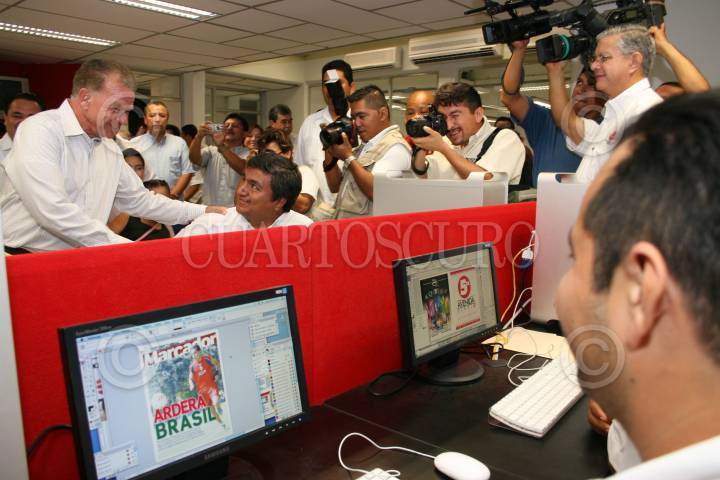 VILLAHERMOSA, TABASCO, 04MARZO2008.- Tras cinco meses de haber permanecido cerrado el grupo editorial Olmeca, anoche fue reinaugurado por el gobernador Andres Granier Melo. Dicho acto fue presentado por el Presidente de la editorial José Antenor Ancona Rodriguez, quien mostro a los presentes las intalaciones con todo un nuevo equipo adquirido. FOTO: MARCO POLO GUZMÁN HERNÁNDEZ/CUARTOSCURO.COM