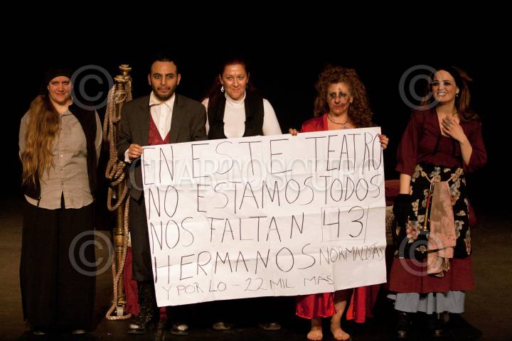MÉXICO, D.F., 09FEBRERO2015.- Develación de placa de la obra "Para Soñar que no estamos Huyendo" de la compañía Reinas Chulas en el Teatro Benito Juárez. La escritora Sabina Berman fue la invitada a la develación. Al final de la develación la compañía se pronunció por la aparición con vida de los 43 normalistas de Ayotzinapa. FOTO: CUARTOSCURO.COM