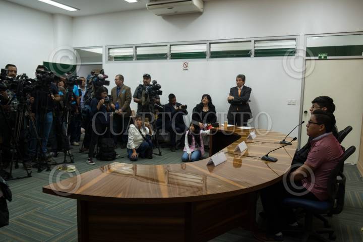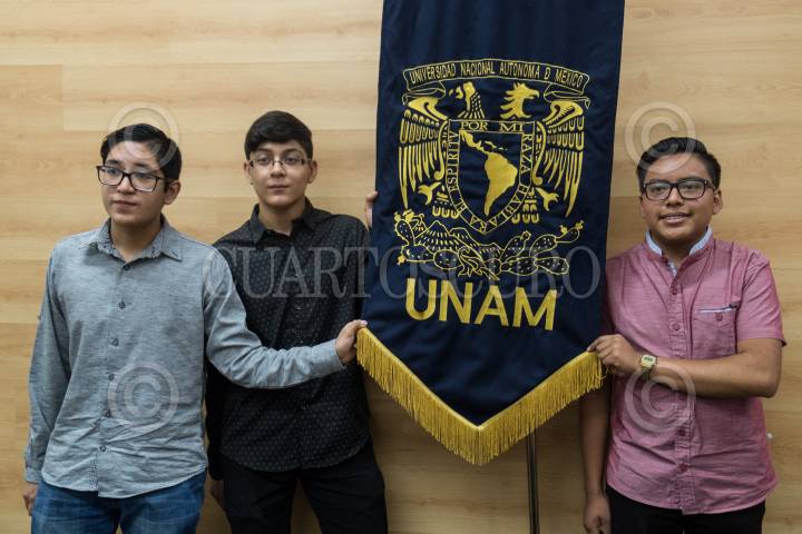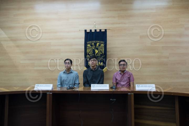 CIUDAD DE MÉXICO, 31JULIO2018.- José Daniel Castillo, Carlos Eduardo Manuel Y Edgar Alan Miranda, estudiantes que obtuvieron el puntaje más alto en el examen de selección de ingreso al bachillerato consolidando sus lugares en las preparatorias 6 y 3; ofrecieron conferencia de prensa en la rectoría de la UNAM para hablar sobre el tema. FOTO: ANDREA MURCIA /CUARTOSCURO.COM