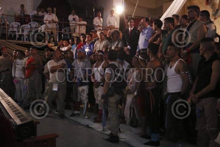CIUDAD DE MÉXICO, 26ABRIL2016.- El Reclusorio Preventivo Varonil Oriente fue escenario para una función especial de la obra Don Quijote: Un grito de libertad, con la cual 280 internos e internas del Sistema Penitenciario de la Ciudad de México conmemoraron 400 años del fallecimiento del escritor Miguel de Cervantes Saavedra, máxima figura de la literatura en lengua castellana. Internos del Reclusorio Preventivo Varonil Oriente e internas del Centro Femenil de Reinserción Social Santa Martha Acatitla interpretaron con gran emotividad la versión libre del musical El Hombre de La Mancha, adaptada y dirigida por Arturo Morell, fundador y presidente de la Fundación Voz de Libertad A.C. FOTO: CUARTOSCURO.COM