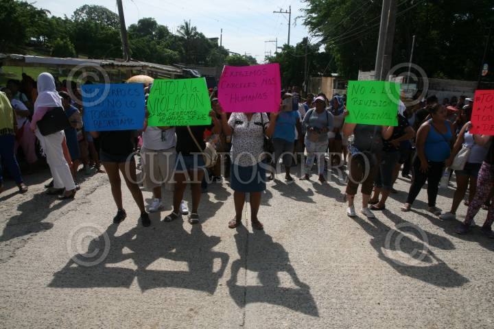 ACAPULCO, GUERRERO, 18SEPTIEMBRE2017.- Mujeres se manifestaron afuera del centro de reinserción social de Acapulco, en Las Cruces, para exigir un alto a las violaciones de sus derechos cuando visitan a sus familiares internos. Exigieron que termine la revisión vaginal, entre otros aspectos que sienten son abusos de autoridad. FOTO: BERNANDINO HERNÁNDEZ /CUARTOSCURO.COM