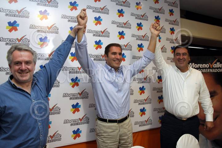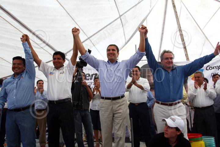 PUEBLA, PUEBLA, 12MAYO2010.- Santiago Creel Miranda, Senador de la bancada del PAN, en compañía de Rafael Moreno Valle, candidato a la gubernatura por el estado, durante su visita de trabajo donde reitero el apoyo a la candidatura de Rafael. FOTO: FRANCISCO GUASCO/CUARTOSCURO.COM