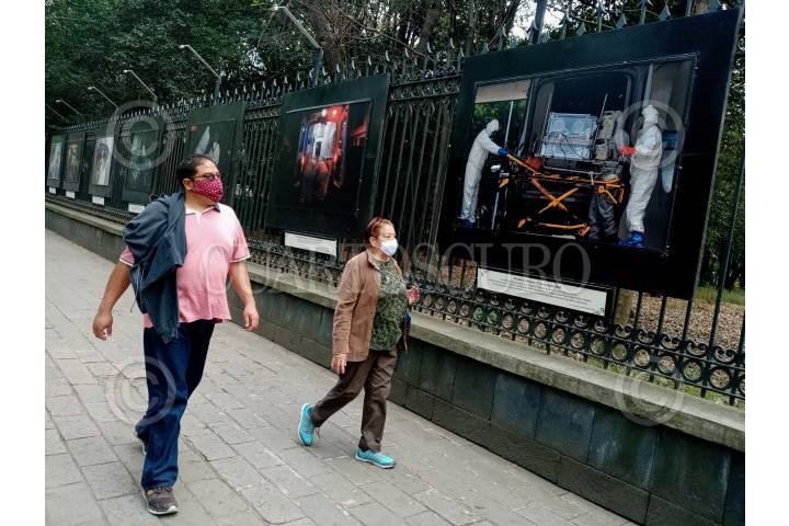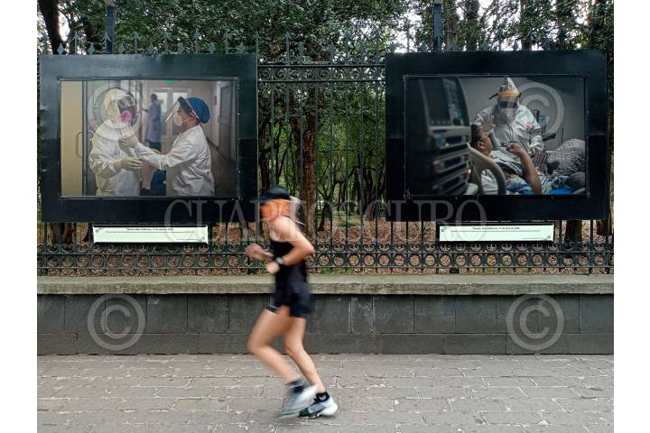 La exposición “Heroínas y héroes de la COVID-19" es una recapitulación de 58 imágenes en homenaje al personal médico por su labor durante la pandemia del Covid-19 en la Galería Abierta Rejas del Bosque de Chapultepec.
