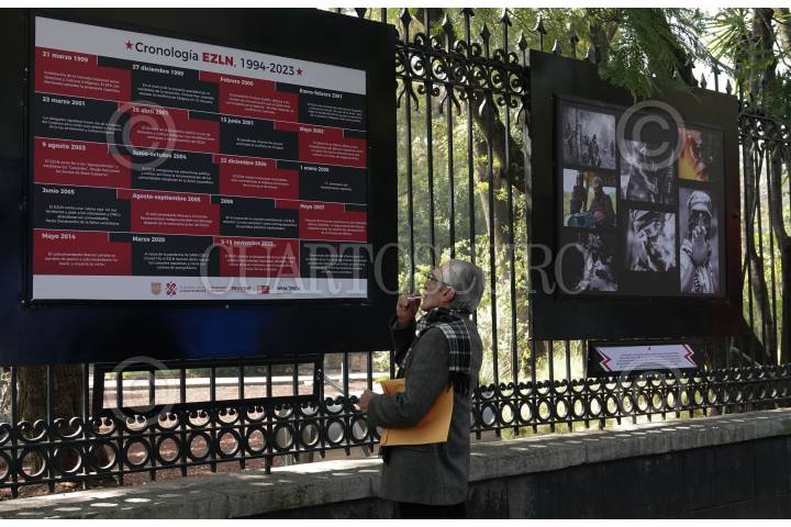 CIUDAD DE MÉXICO, 19DICIEMBRE2023.- Aspectos de la exposición “A 30 años del EZNL: memoria y dignidad”, una muestra de 70 imágenes de 15 fotógrafos que documentaron la lucha y resistencia del Ejército Zapatista de Liberación Nacional (EZLN) desde 1994. Antonio Turok, Marco Antonio Cruz, Pedro Valtierra, Francisco Mata, Jorge Luis Gallegos, Víctor Mendiola, Cecilia Candelaria son algunos de los autores que exponen en las rejas de Chapultepec. Los interesados podrán visitar la muestra hasta el 28 de enero. FOTO:DENISSE HERNÁNDEZ/CUARTOSCURO.COM