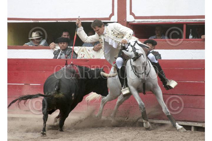 SAN LUIS POTOSÍ, SAN LUIS POTOSÍ 03ABRIL2010.- Durante la corrida de Sábado de Gloria en la Monumental plaza de toros El Paseo estuvieron en un mano a mano los rejoneadores Rodrigo Santos y Jorge Hernández donde ambos cortaron orejas. FOTO: MARCELO PALACIOS/CUARTOSCURO.COM