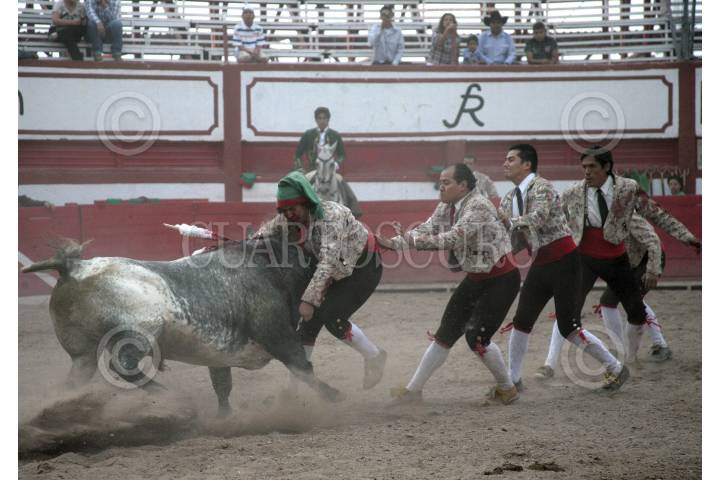 SALTILLO, COAHUILA 05AGOSTO2012.- La tarde de ayer, se llevó a cabo la corrida donde los rejoneadores, Gastón Santos, Emiliano Gamero y el Novillero Eduardo Rubí se disputaron la presea Santo Cristo 2012 en la Plaza de Toros Armillita, quienes lidiaron ejemplares de La Cardona y la Cardenilla. Participaron también los Forcados de Mazatlán y San Luis, además del novillero Antonio Mendoza. FOTO: KARLA ITZEL RUÍZ /CUARTOSCURO.COM