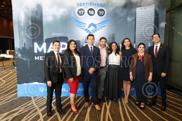 CIUDAD DE MÉXICO, 22JULIO2025.- Yanira Gurrola, asambleísta de Nuevo México; David Álvarez, asambleísta del Estado de California; Arturo Carmona, presidenta de MAPA; Cecilia González, asambleísta de Nevada; Tayrin Riojas, cofundadora de MAPA; Cristina Palmer, funcionaria de la SRE, y Gerardo Ramos, director de políticas públicas de MAPA, , al finalizar el anuncio del encuentro binacional México-Estados Unidos convocado por MAPA (Mexican-American Policy Alliance), el cual se llevará a cabo en el mes de septiembre en la Ciudad de México, y analizará una agenda conjunta para fortalecer los lazos económicos, educativos y culturales de ambas naciones. FOTO: MOISÉS PABLO/CUARTOSCURO.COM