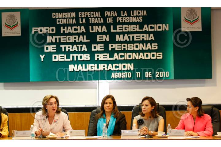 MÉXICO D.F., 11AGOSTO2010.- Margarita Zavala, esposa del Presidente de México, acompañada de Josefina Vázquez Mota, Diputada del PAN y de Clara Ruiz Massiu, Diputada del PRI, acudió al foro “La Legislación Integral en Materia de rata de Personas y Delitos Relacionados” esto en las instalaciones de la Cámara de Diputados. FOTO: GUILLERMO PEREA/CUARTOSCURO.COM