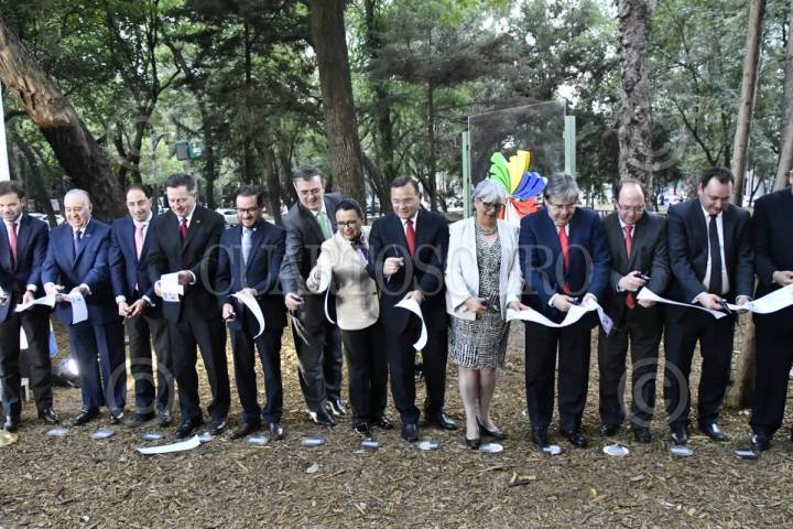 CIUDAD DE MÉXICO, 09MAYO2019.- Con motivo del octavo aniversario de la Alianza del Pacífico, Marcelo Ebrard Casaubon, secretario de Relaciones Exteriores; Graciela Márquez, secretaria de Economía; Rosa Icela Rodríguez Velázquez, secretaria de Gobierno de la Ciudad de México; Roberto Ampuero, ministro de Relaciones Exteriores de Chile; Carlos Holmes, ministro de Relaciones Exteriores de Colombia; José Manuel Restrepo, ministro de Comercio, Industria y Turismo de Colombia; Néstor Popolizio, ministro de Relaciones Exteriores de Perú; y Édgar Vásquez, ministro de Comercio Exterior y Turismo de Perú inauguraron el “Parque Alianza del Pacífico” en el Bosque de Chapultepec, en la Ciudad de México, como símbolo de la fortaleza de esta integración regional y de la unidad de sus pueblos. FOTO: CUARTOSCURO.COM