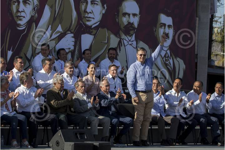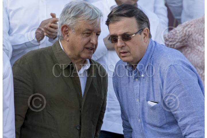TIJUANA, BAJA CALIFORNIA, 08JUNIO2019.- Marcelo Ebrard, secretario de Relaciones Exteriores, durante la celebración por el acuerdo alcanzado con Estados Unidos que evita la imposición de aranceles a productos mexicanos. El mitin se realiza en la Zona Centro de la ciudad Fronteriza. Desde temprana hora cientos de simpatizantes se comenzaron a reunir previo al evento. FOTO: OMAR MARTÍNEZ /CUARTOSCURO.COM