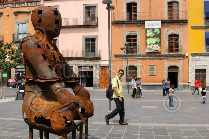 CIUDAD DE MÉXICO, 27JUNIO2017.- Un transeúnte del centro histórico observa uno de los guardianes de óxido del artista Xavier Mascaró, muestra de la cooperación entre México y España con motivo de los 40 años de relaciones diplomáticas entre las dos naciones. FOTO: GALO CAÑAS /CUARTOSCURO.COM