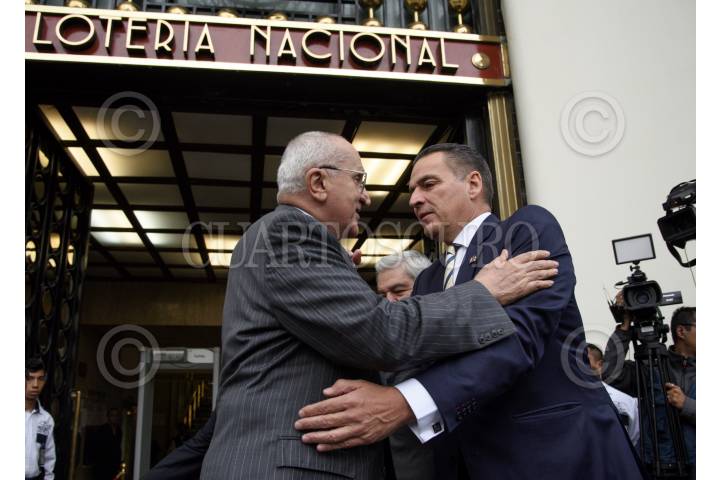 CIUDAD DE MÉXICO, 02JULIO2019.- Jesús Seade Kuri, Subsecretario para América del Norte, y Ernesto Prieto Ortega, Director General de la Lotería Nacional para la Asistencia Pública, durante su llegada al sorteo mayor de la Lotería Nacional conmemorativo al 75 aniversario de Relaciones Diplomáticas entre México y Canadá. FOTO: MARIO JASSO /CUARTOSCURO.COM