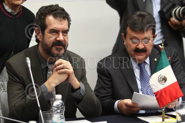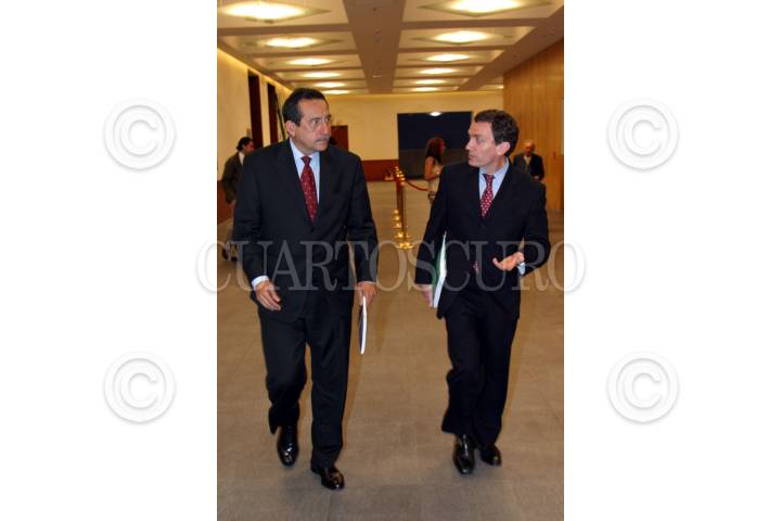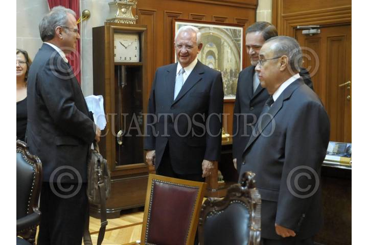 MÉXICO, D.F., 26JULIO2011.- Felipe Gonzalez, relator especial sobre los trabajadores migratorios y miembros de sus familias de la Comisión Interamericana de Derechos Humanos y el senador Renan Cleominio Zoreda durante una reunión de trabajo en el Senado de la República. FOTO: RODOLFO ANGULO/CUARTOSCURO.COM
