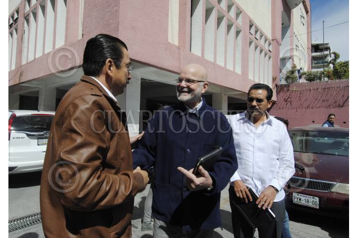 CHILPANCINGO, GUERRERO, 19ENERO2017. -Michel Forst, relator especial sobre la situación de las y los defensores de derechos humanos de la Organización de Naciones Unidas (ONU), se reunió en privado con el presidente de la Comisión de Defensa a los Derechos Humanos de Guerrero (Codehum), Ramón Navarrete Magdaleno, con el Secretario General Florencio Salazar Adame, con víctimas de desparecidos y asesinados de Chilpancingo, y por la tarde acudió a las instalaciones de la normal rural Raúl Isidro Burgos de Ayotzinapa; ahí fue recibido por los padres de los 43 desparecidos y estudiantes. FOTO: JOSÉ I.HERNÁNDEZ /CUARTOSCURO.COM
