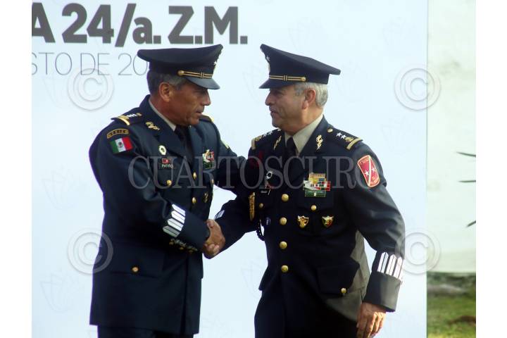 CUERNAVACA, MORELOS, 16AGOSTO2019. Ceremonia de toma de protesta de Agustín Vallejo Silva, como nuevo comandante de la 24 Zona Militar. El general de división Rogelio Armando Patiño Canchola, comandante de la 1era Región Militar fue el encargado de tomar la protesta. El gobernador del estado, Cuauhtémoc Blanco Bravo estuvo presente en la ceremonia. FOTO: MARGARITO PÉREZ RETANA /CUARTOSCURO.COM