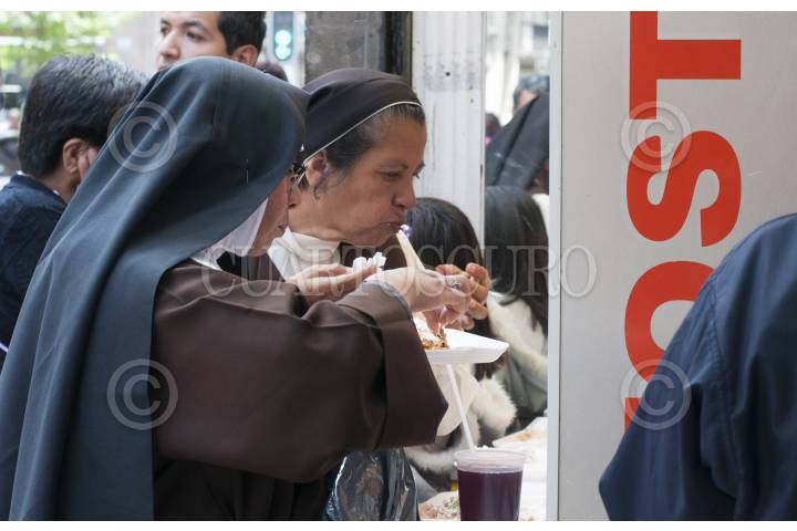 MÉXICO, D.F., 14AGOSTO2013.- Una pareja de monjas se alimentan con unas tostadas en un puesto de comida del Centro Histórico. FOTO: DIEGO SIMÓN SÁNCHEZ /CUARTOSCURO.COM